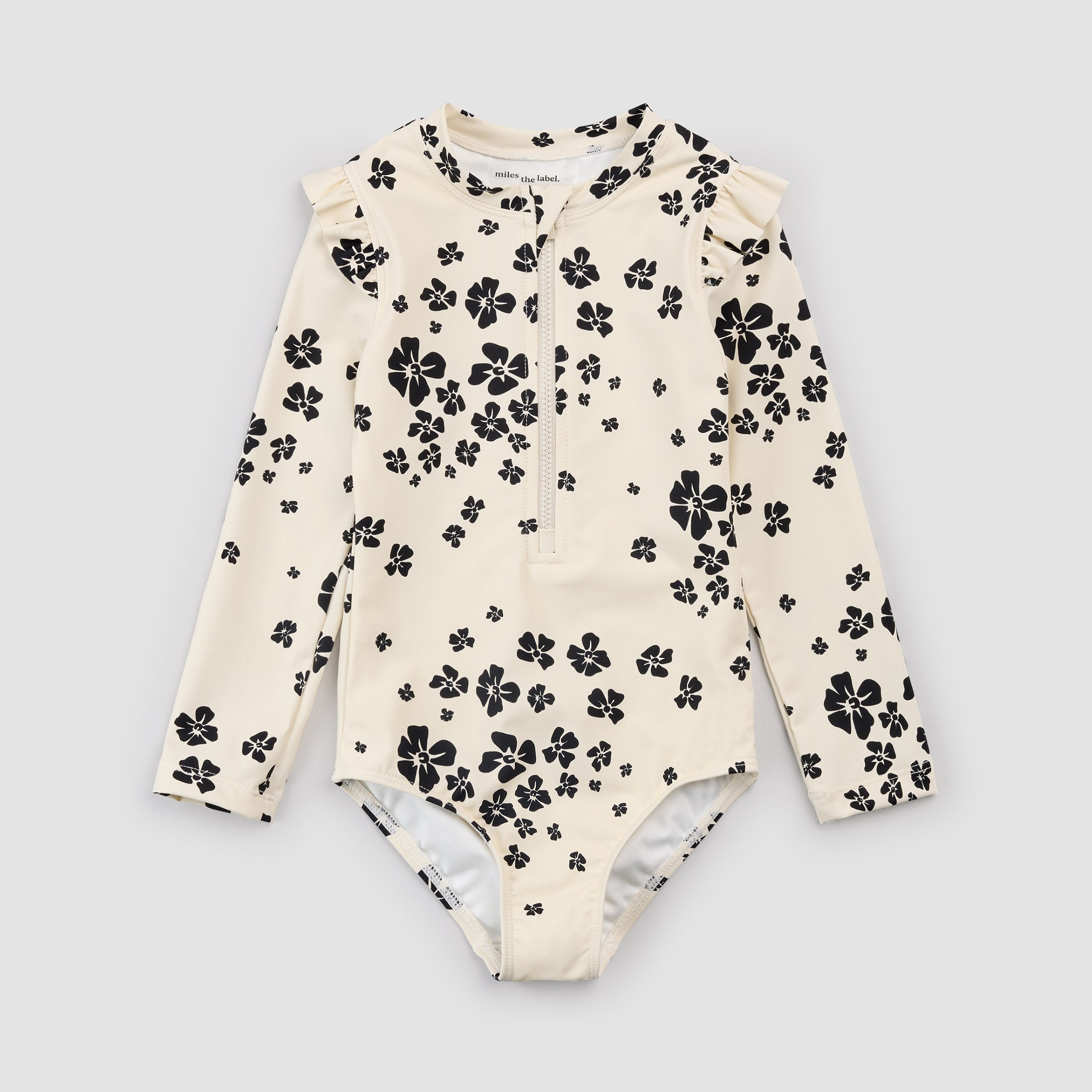 Flowers Print on Beige Long-Sleeve Swimsuit