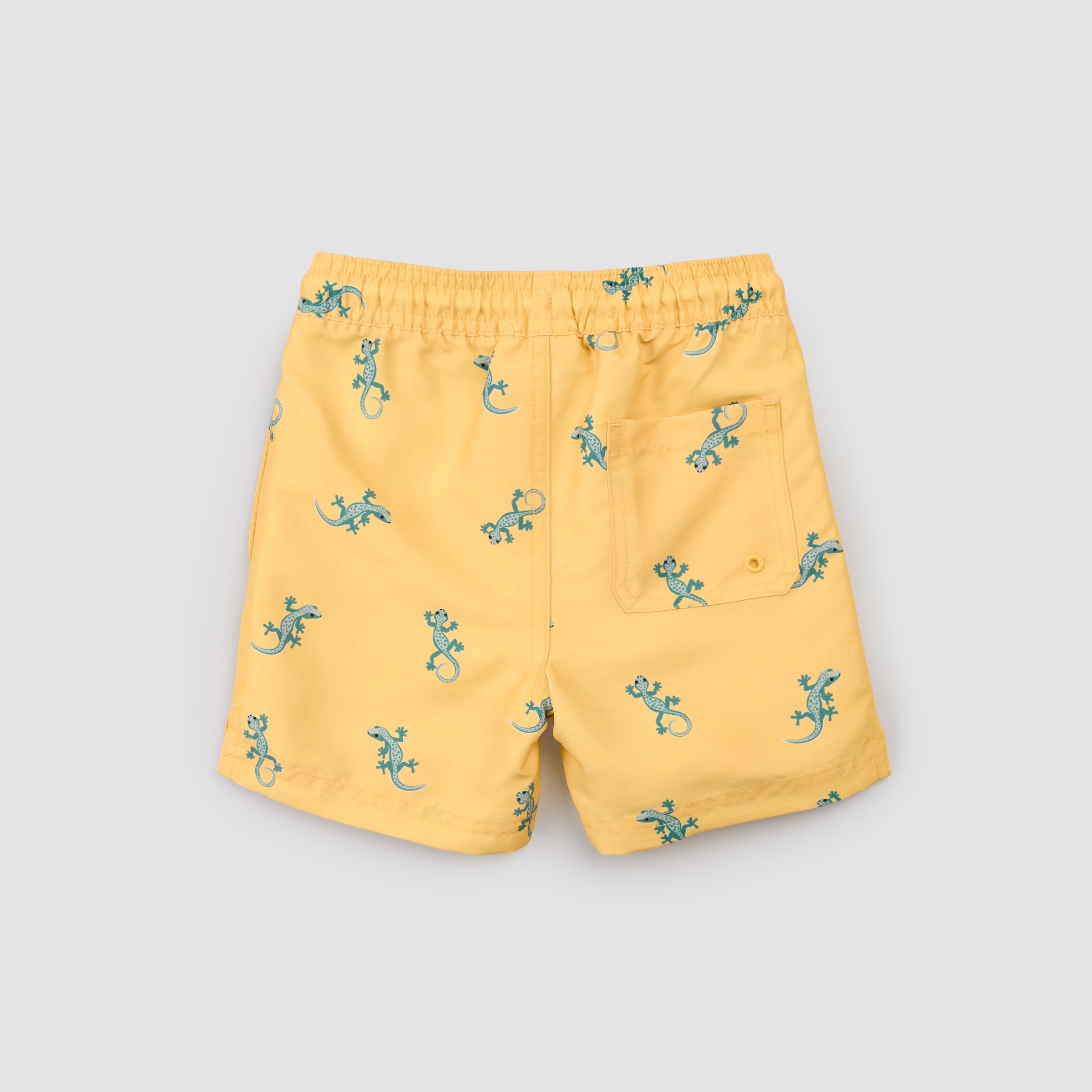 Gecko Print on Mustard Swim Trunks