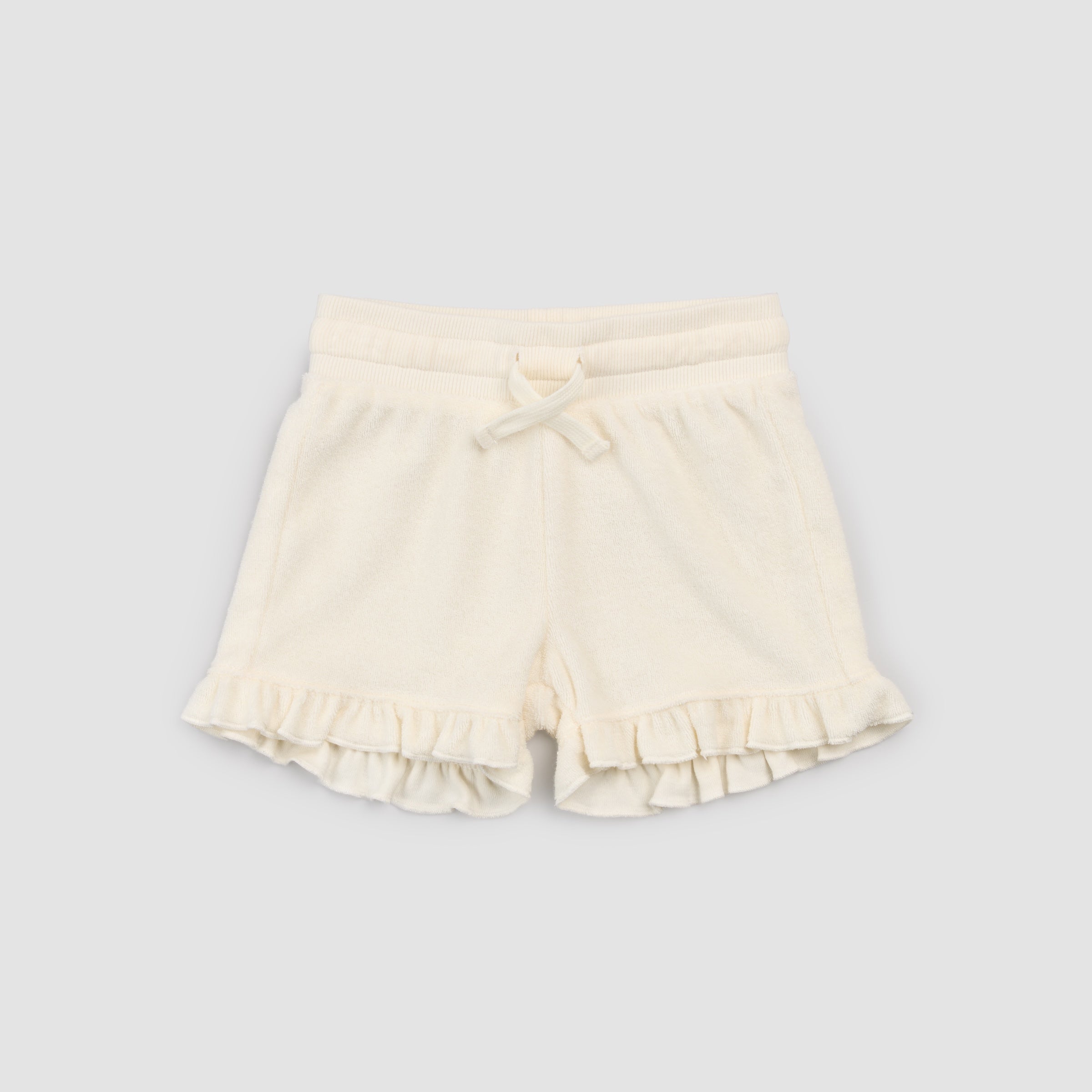 Made from organically grown cotton terry, these light and breathable shorts offer sun-safe style and are perfect for covering her up after a swim. With flutter trims and a gentle elastic waist, these simple shorts offer style and comfort. Pair with the matching top for a laid-back summer fit.