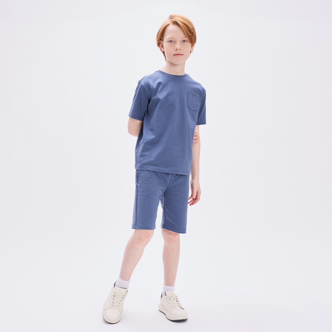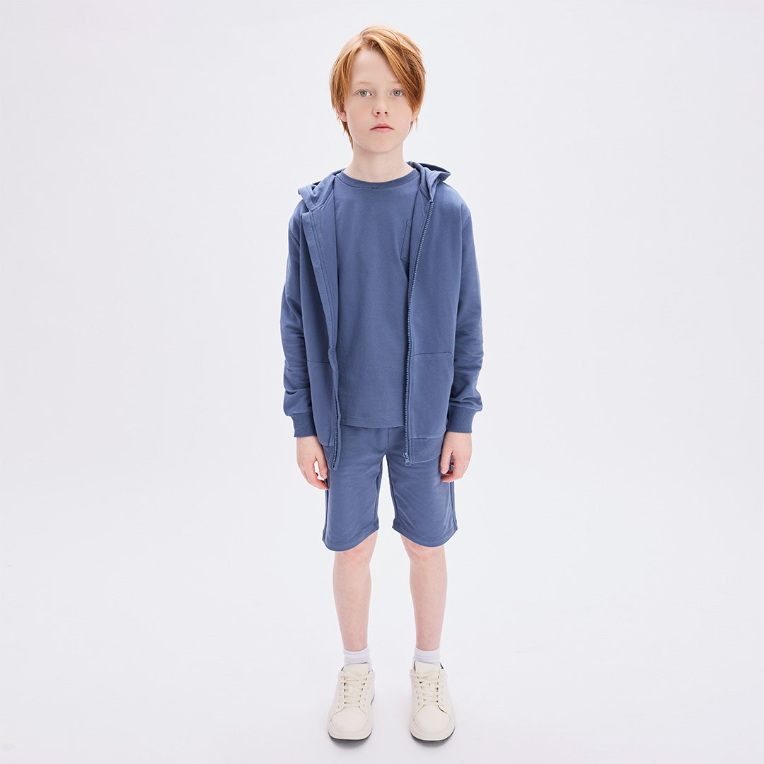 Simple, soft and a Spring staple. These blue jogger-style shorts are super comfy and have laid-back fit. The elasticated, drawstring waistband makes the shorts easy to wear all day, whether they’re lounging in the garden to hitting the park. Made from organically grown, cotton French Terry, the shorts are super soft and light for the Spring.