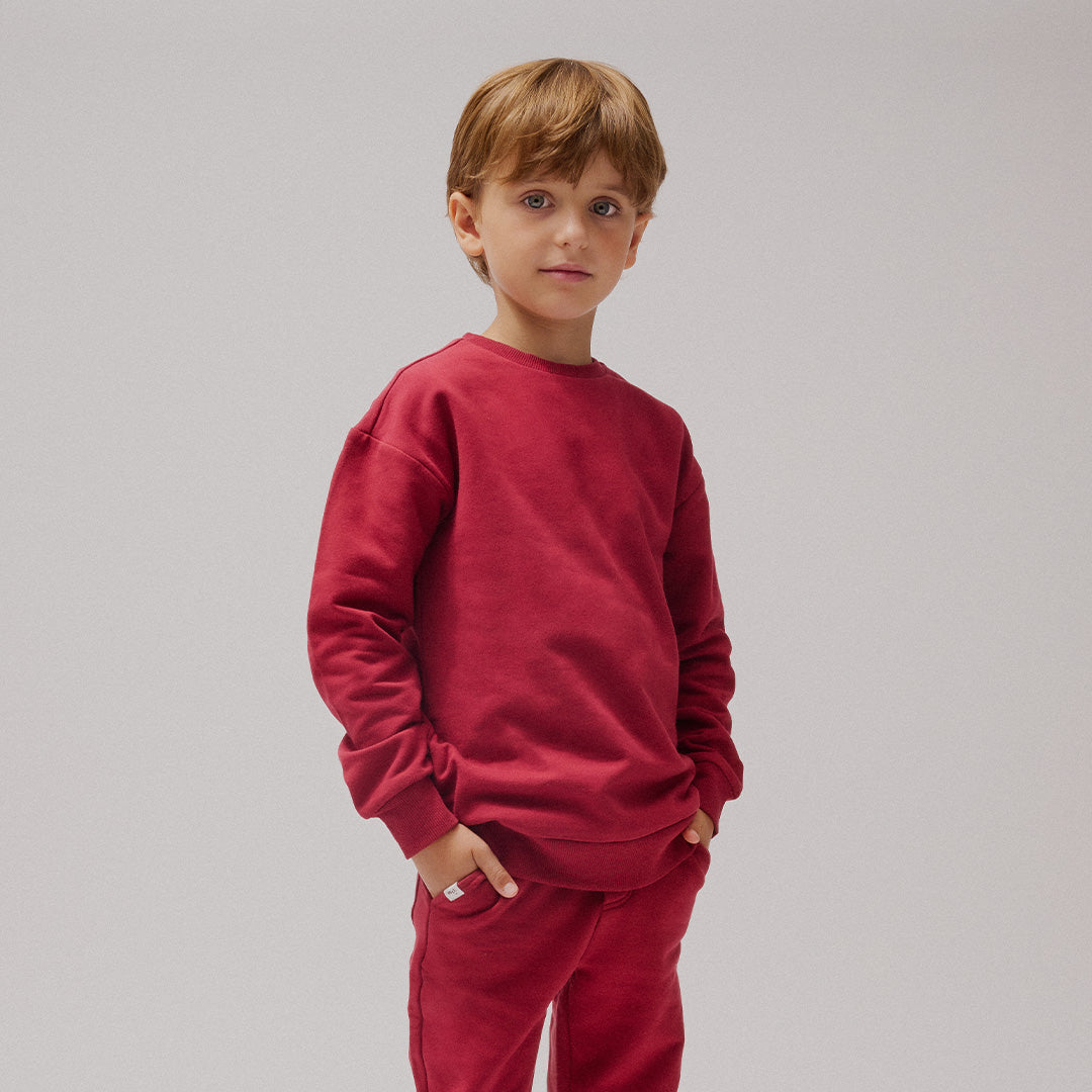 Perfect for the fall, this deep red sweatshirt provides a warm and cozy feel to match the autumnal leaves. The crewneck makes over-the-head dressing easy and there’s a range of joggers to coordinate for a quick get-up-and-go outfit choice.