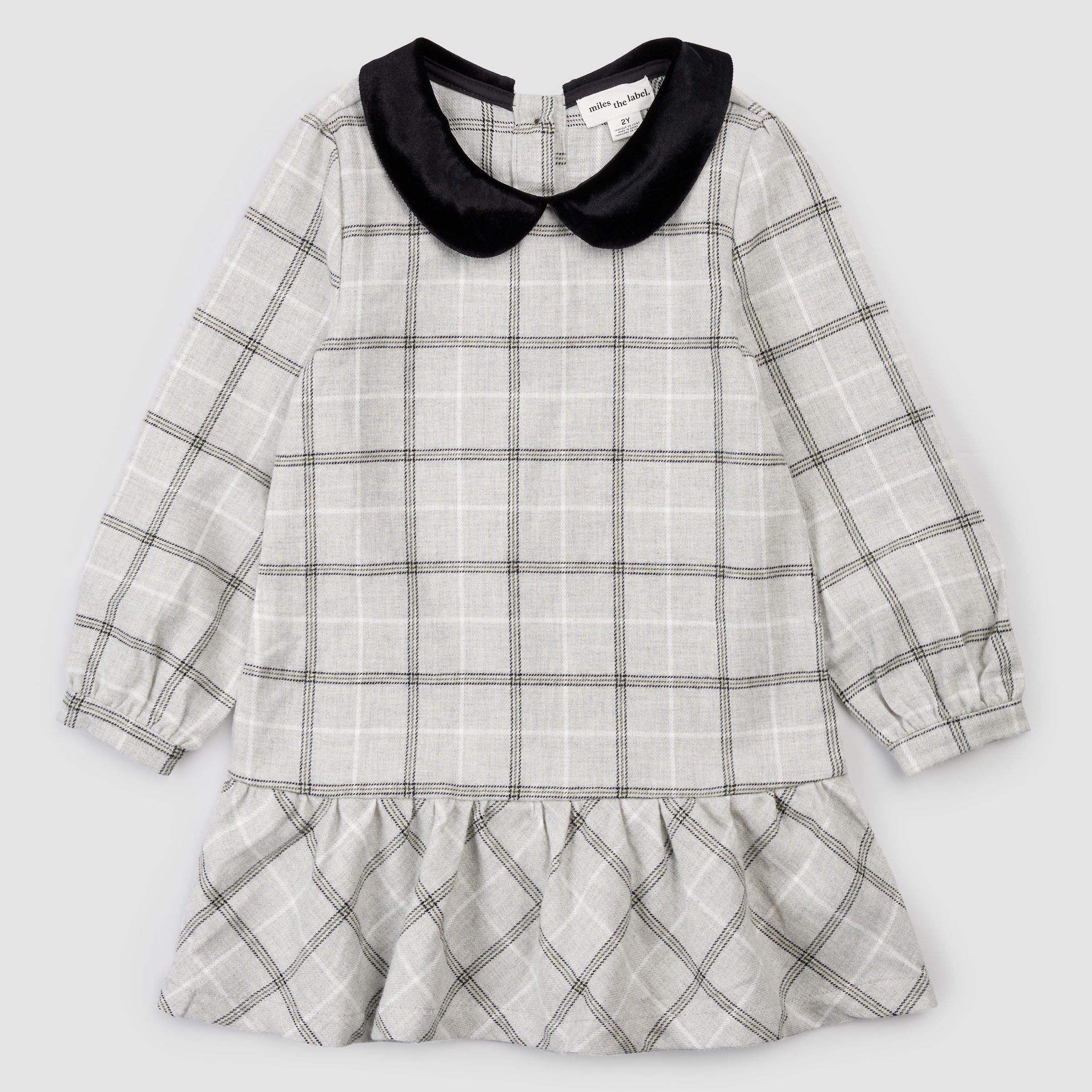 This soft flannel dress will be a seasonal favorite, featuring a tiered skirt and a vintage-inspired velvet Peter Pan collar. Perfect for Fall, the brushed yarn dyed flannel is cozy and gentle on her skin and the button placket at the back makes dressing quick and fuss-free on chilly mornings. Pair with tights to beat the chill when heading out for a family meal or an all-day adventure.