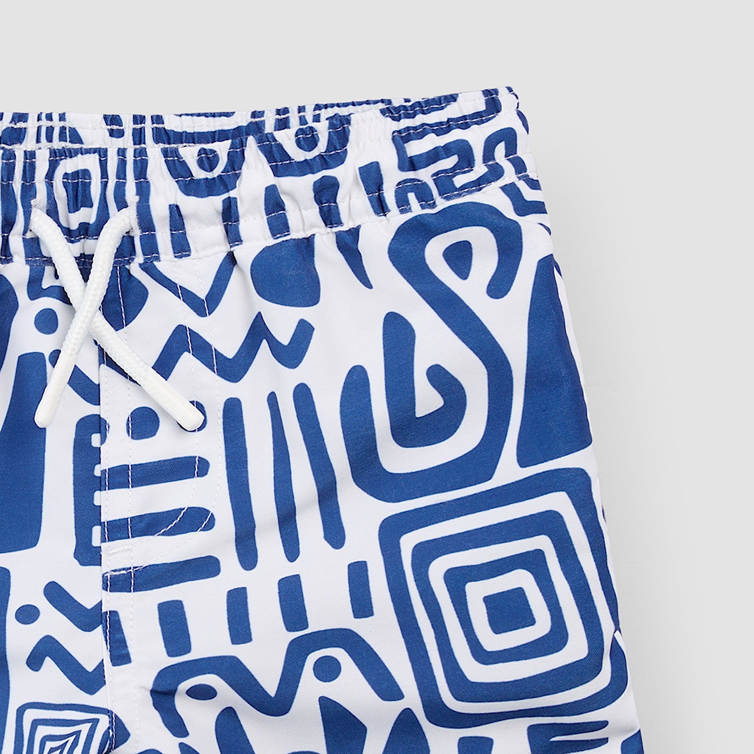 Deep Blue and Off-White Patterned Swim Trunks