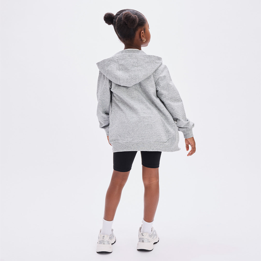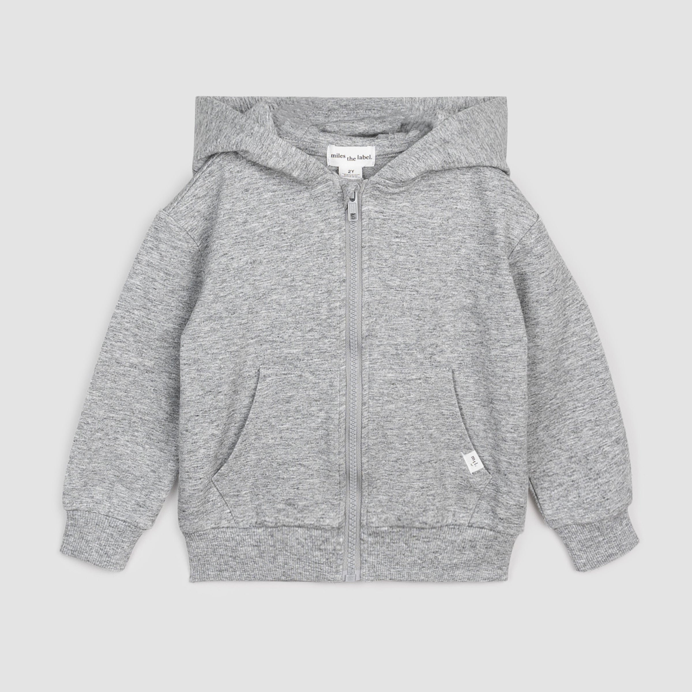 Kick back in our Miles Basics range. This simple grey hoodie has a full-length zip at the front with pockets on either side. The ribbed cuffs and elasticated waistband make the hoodie easy to pull over t-shirts and jeans.
