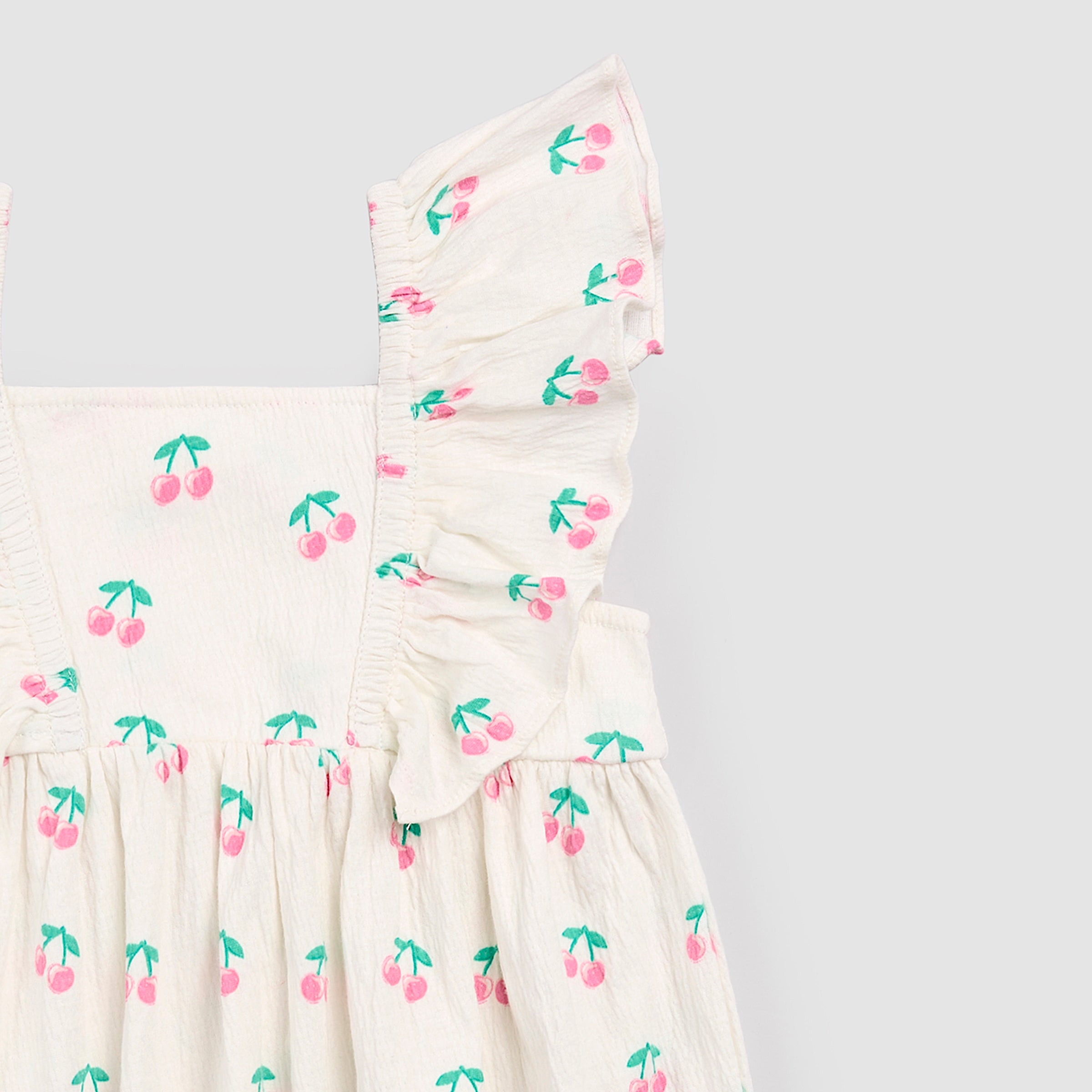 Jolie et ludique, cette robe en jersey froissé est à la fois souple et éclatante. Ses manches à volants, sa coupe fluide et son encolure carrée offrent un style chic, tandis que l'imprimé intégral ajoute la cerise sur la gâteau! Idéale pour les fêtes estivales et les pique-niques printaniers.