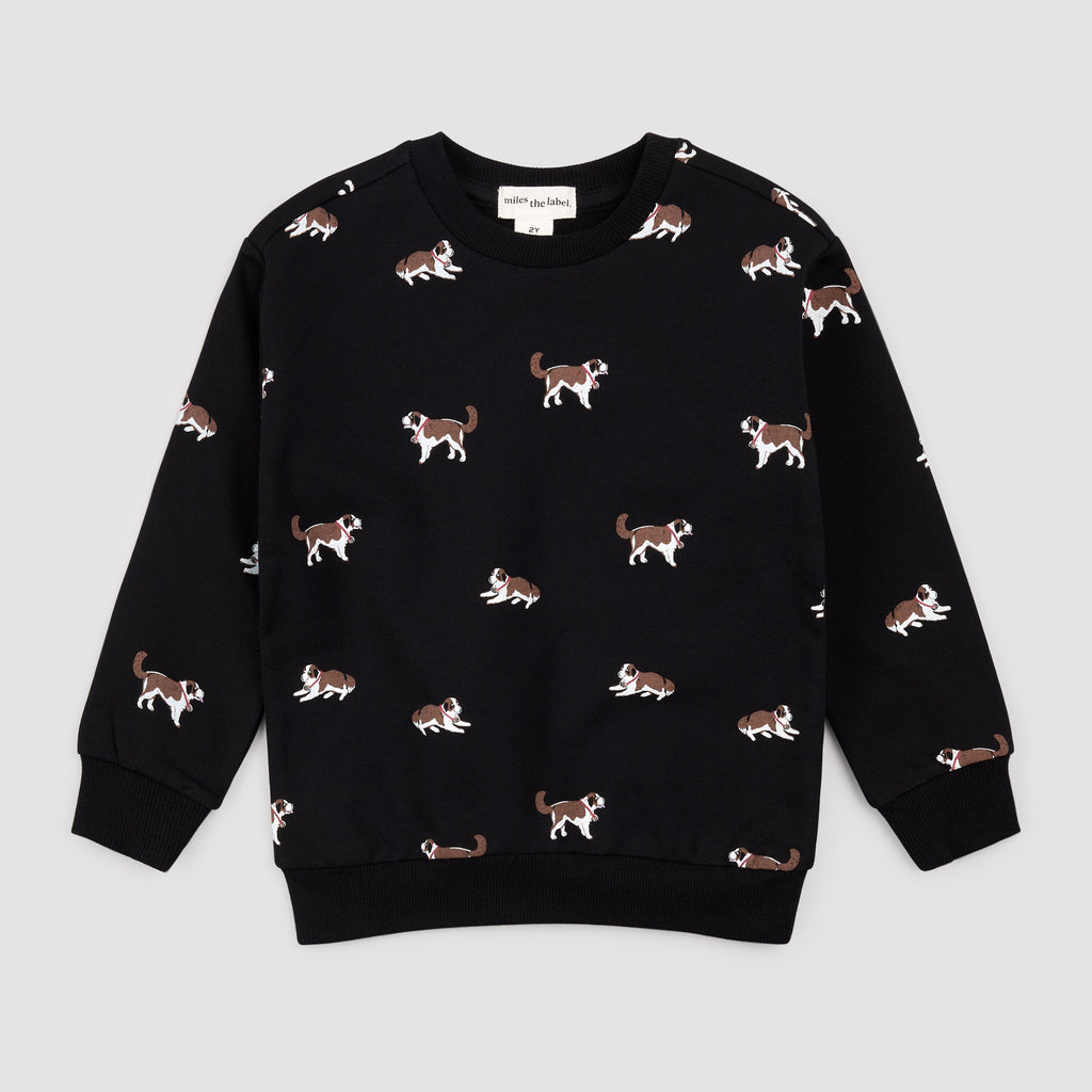 A cozy everyday sweatshirt featuring a charming St. Bernard print. Made from soft, fleece fabric, this piece has a rounded neckline and ribbed cuffs for all-day comfort. Match it with joggers from our Miles Basics range before heading out to walk the dog.